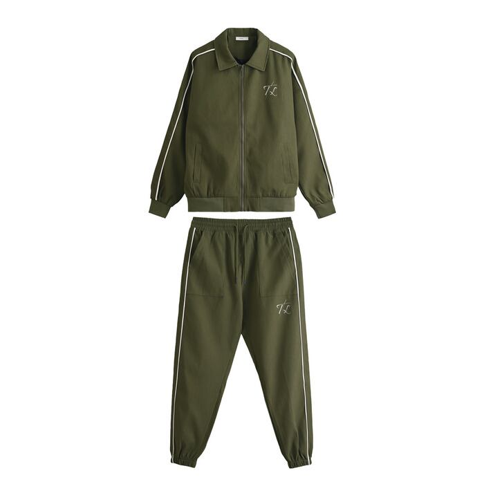 ワッフル調素材で作られた、快適なトラックジャージセットアップ。
