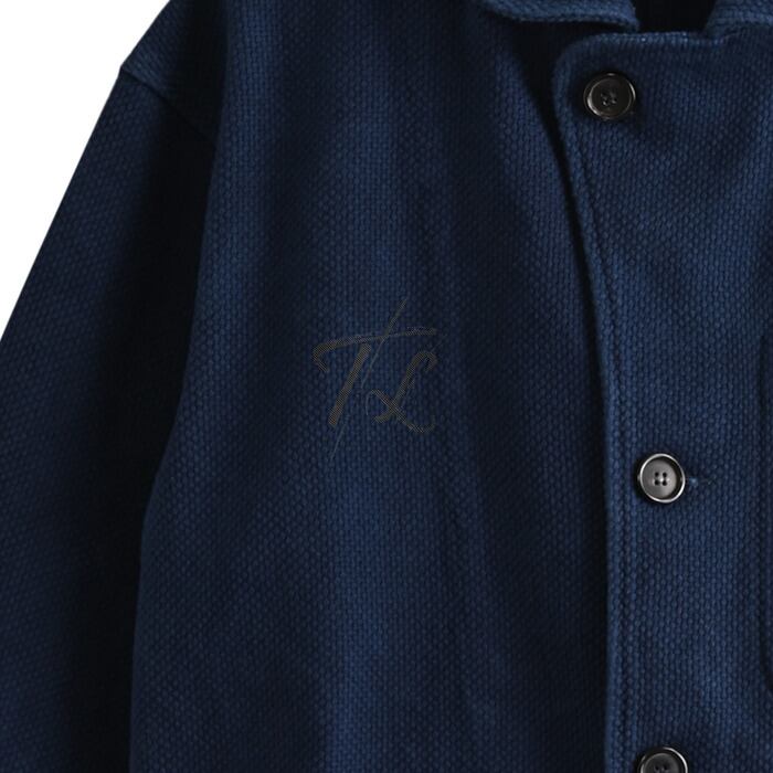 表面に凸凹感のあるナチュラルな風合いと前立つウェーブデザインが特徴的なワークジャケット。